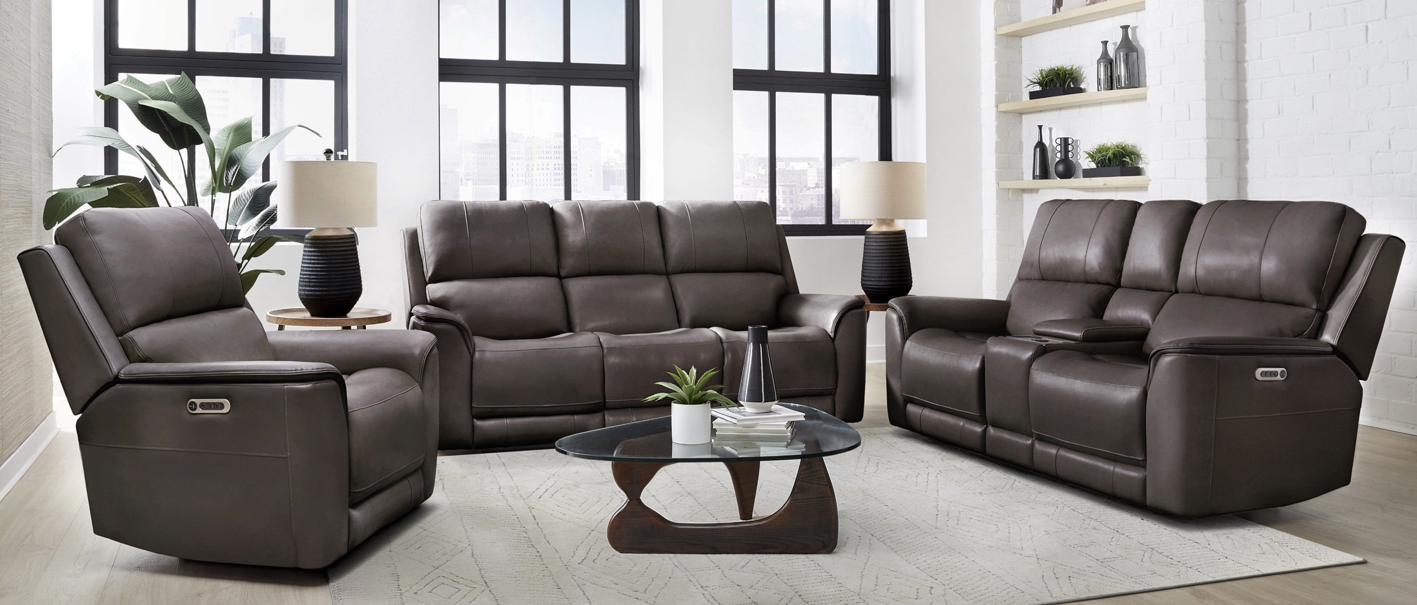 MEAS-832P3Z-STBR: BROWN 3 Way Power Zero Gravity Sofa 86” x 41” x 44”